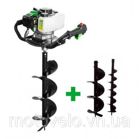 У комплектацію обладнання входять 3 шнеки діаметром 100, 150 і 200 мм. Довжина шнеків становить 800 мм, опційно можна замовити подовжувач 400 мм. Шнеки легко кріпляться на валу і швидко змінюються. Вимикач і регулятор швидкості зручно розміщені на правій ручці. Для зменшення навантаження на руки є ефективна антивібраційна система. Цей бензобур ціна якого приємна за рахунок прямих поставок від виробника, стане вдалим придбанням для вашого господарства.
